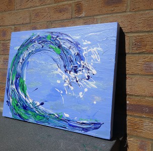 This big wave painting is painted in acrylics on canvas and painted around the sides ready to hang on the wall or it can be framed if preferred. Free postage to the UK only . Please ask about postage costs abroad