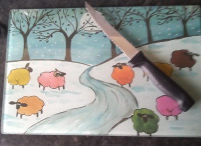 Glass Chopping boards > Colourful Sheep in the Snow