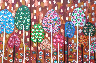 Tree paintings for sale > Leaves falling on Lollipop Trees