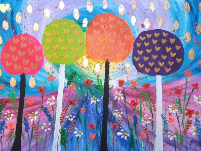 > Lollipop Trees among Hearts and Flowers